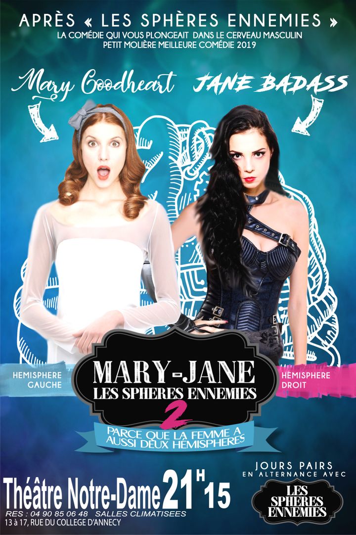 Mary Goodheart, hémisphère gauche. Rêveuse, sensible, idéaliste. La tête dans les étoiles. Jane Badass, hémisphère droit. Ambitieuse. Guerrière. Cynique. La tête sur les épaules. À première vue, elles n’ont rien en commun, mais elles sont co-pilotes dans le même cerveau, celui de Mary-Jane. Alors que Jane travaille a conquérir le monde de l’entreprise et se bat pour obtenir son indépendance, Mary rêve de chanter au Carnegie Hall et n’a rien contre l’idée d’un cocon familial avec son Prince Charmant !