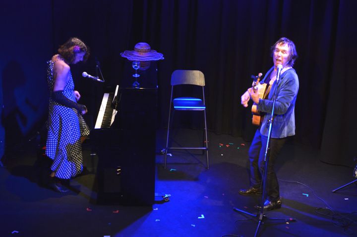 Gilbert Bécaud était un chanteur de variétés Certains de ses textes sont engagés et beaucoup d'autres abordent plusieurs facettes de la condition humaine. Deux chanteurs saltimbanques nous convient à une vente aux enchères : deux voix, un piano, une guitare, intimité acoustique pimentée par un ukulélé et un mélodica. La compagnie PetiDej garde ici toute son identité artistique et scénique en revisitant une partie de ce répertoire et en l'interprétant avec sa propre sensibilité. Cette balade dans l'univers de Bécaud rend hommage à un artiste exceptionnel disparu depuis 20 ans, compositeur prolifique, pianiste-interprète à fleur de peau qui fit trente-trois longues escales à l'Olympia.